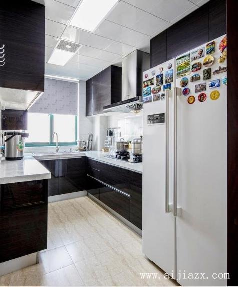 宽敞的厨房,黑白色的搭配,经典耐看。