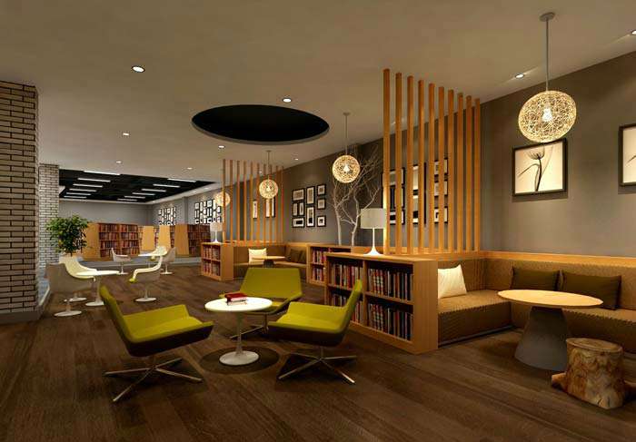 郑州装修设计公司 >> 餐饮店面设计 >> 咖啡店设计 >>图书馆咖啡厅装修设计效果图