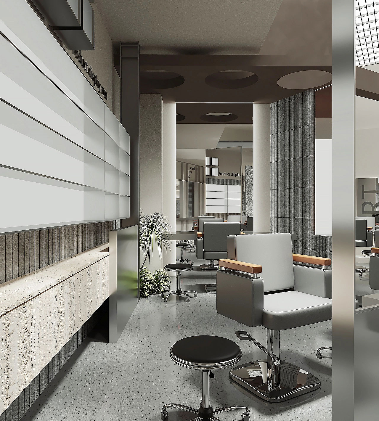 千舟装饰是一家专业的理发店设计公司,提供理发店设计与装修施工服务!理发店设计案例专区推荐53平米极简理发店设计装修效果图,73平米理发店设计装修效果图,郑州管城区理发店方案、73平米理发店设计装修效果图、73平米理发店设计装修施工报价明细!