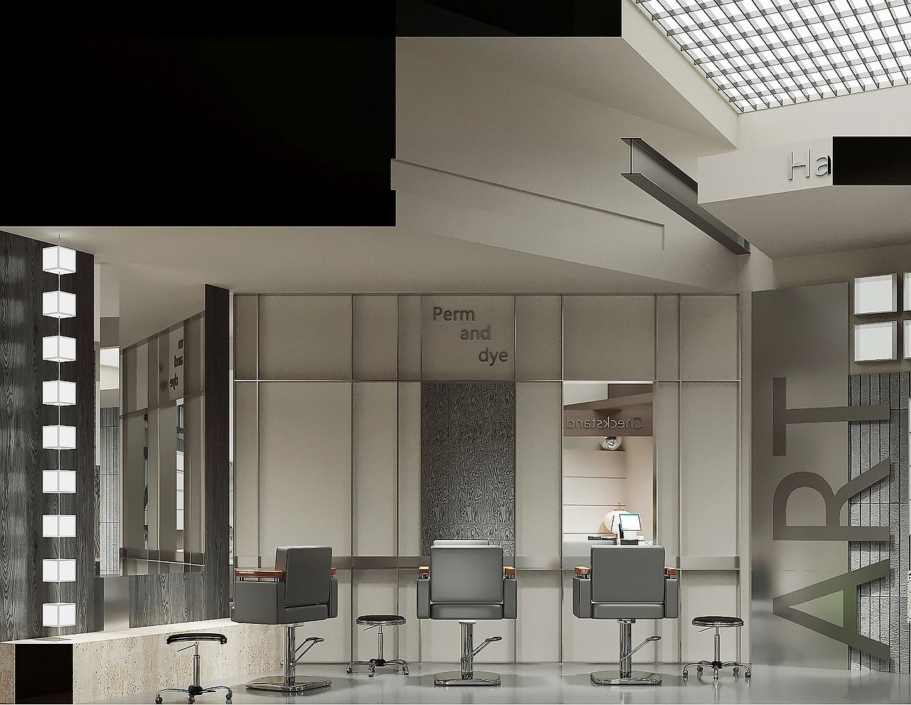 郑州装修设计公司 >> 商业店铺设计 >> 理发店设计 >>53平米极简理发店设计装修效果图
