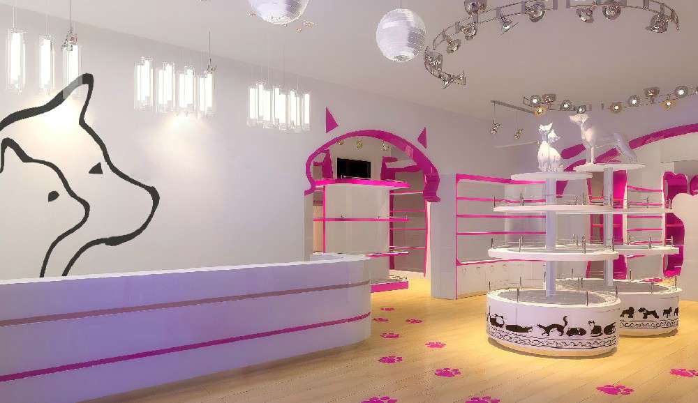 宠物店灯光的少不了的,对于灯光的选择要合理,一般宠物店的灯光主要有白日光、暖色光、蓝色这几种,而白色要放在最顶层,暖色可以放在第二层,而暖色放下面不会影响照亮屋子的白光,最好的放在靠下或者墙角这样衬托的效果才会出来